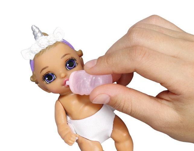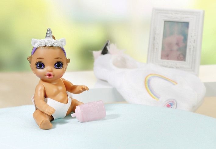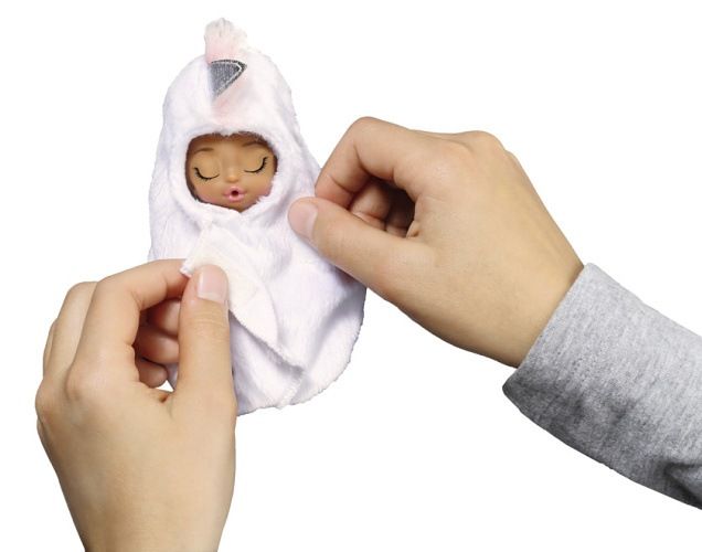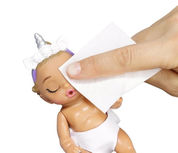Čáp se vrátil! Přinesl nová miminka, která můžeš kousek po kouskuobjevovat. Úžasné uzlíčky plné překvapení skrývají spoustupřekvapení. Nejprve rozbal zavinovačku a podívej se, jaký má miminkofusáček. Novorozený miláček může podřimovat jako mrkvička, sněhulák,slunečnice, jednorožec nebo například dalmatin. Očka má ale stálezavřená. Chceš-li zjistit, jakou mají barvu, jemně mu otři oční víčkavlhkým hadříkem. Pak opatrně otevři fusáček a uvidíš, jaký má miminkotón kůže, barvu vlasů a jaký má účes. Je to holčička nebo chlapeček?A jakou barvu má jeho lahvička? BABY born Surprise miminko rádo pije voduz lahvičky a používá plenku, na které se po namočení objeví hezkývzor. Jakmile objevíš všechna tajemství miminka, můžeš vyplnit rodnýlist. Součástí je i plakátek s přehledem všech miminek BABY bornSurprise a se zábavnými hrami. • BABY born Surprise • Pro hraní asbírání • S funkcí pití a čůrání, včetně kouzelné plenky •Různorodé hry s panenkami BABY born Surprise zvyšují představivost a byloprokázáno, že podporují rozvoj společenských dovedností a hodnot jako jezodpovědnost, komunikace a empatie BABY born Surprise (2. série) vefusáčku, s plenkou, lahvičkou, rodným listem a přehledem všechmiminek.
