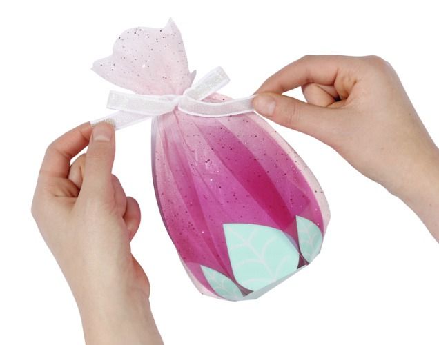 Nejprve rozbal zavinovačku a podívej se, v jakém je miminko fusáčku. Novorozený miláček může podřimovat jako kytička, kočička nebo jednorožec. Očička má stále zavřená. Chceš-li zjistit, jakou mají barvu, jemně mu otři víčka vlhkým hadříkem. Pak opatrně otevři fusáček a uvidíš, jaký má miminko tón kůže, barvu vlasů a jaký má účes. A podívej na ten úžasný třpytkový efekt! Je to holčička nebo chlapeček? A jakou barvu má jeho lahvička?
