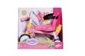 Pozor, přijíždí BABY born! Na své nové tříkolce závodí s medvídkem Teddym a kamarádkou Evou. Díky funkčním kolečkům může BABY born na své tříkolce jezdit jako na skutečné tříkolce. Klakson ve tvaru kačenky Berty se postará o to, aby se jí nikdo nepřipletl