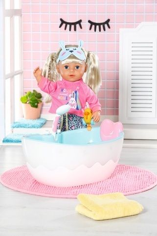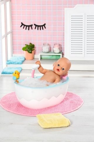 Zamířit, vystřelit… trefa! Starší bratříček je teď pěkně mokrý. S takovou kačenkou se dá ve vodě skvěle bojovat. Můžeš ji umístit na různá místa po okraji vany. Stejně tak i růžový polštářek. Vana je zevnitř modrá jako voda a zvenčí bílá s vyznačenou vlnkou. Když stiskneš tlačítko vedle sprchy, vnější plášť vany se rozsvítí v různých barvách. Sprchové tlačítko aktivuje bílo-růžovou sprchovou hlavici. Pokud je vana prázdná, uslyšíš šplouchání a typické zvuky vody. Pokud byla vana předem naplněna vodou, teče ze sprchové hlavice voda. Sprchovou hlavici lze naklonit směrem do vany, aby se neztratila ani kapka vody. Hadici je možné vytáhnout, aby se panenka BABY born mohla důkladně osprchovat.• Kvalitní příslušenství pro originální panenku BABY born.• Pro radost z nápadité, rozmanité a dlouhotrvající hry.• Vhodné pro panenku velikosti 36 cm a 43 cm.• Funguje na baterie (nejsou součástí).BABY born Vana se světelnými a zvukovými efekty. Součástí je polštářek a stříkací kačenka. Na baterie: 4x AA (jsou součástí balení)