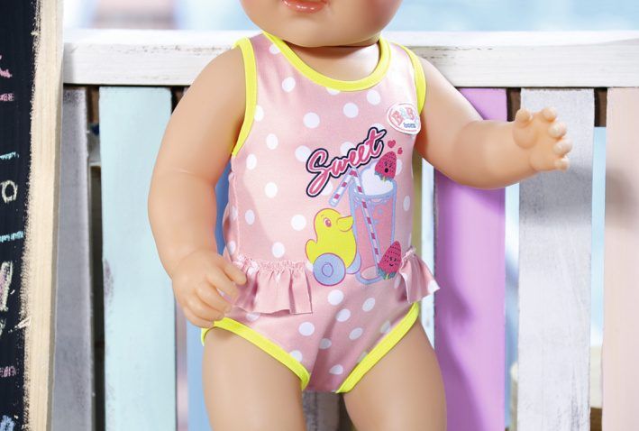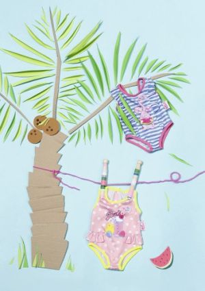 Jednodílné plavky ozdobené legračním potiskem a barevným