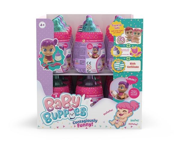 Baby Buppies miminko je vhodné pro děti od 4 let. Vydává reálné zvuky jako opravdové miminko. Zatřes s panenkou, bude se vesele smát. Na baterie: 3x LR44 (jsou součástí balení)