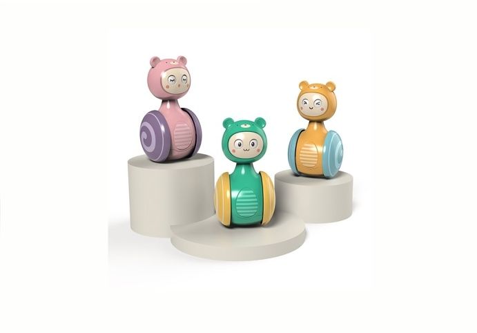 Baby hračka na kolečkách ve veselém a barevném designu panenky, jezdí a hýbe se dopředu/dozadu.