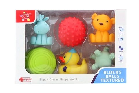 Sada gumových hraček do vody pro nejmenší. Balení obsahuje 3 tvarové hračky a 3 hračky s motivem zvířátek. Baleno v krabici. Rozměry balení cca 28x18,5x9 cm. Velikost hračky cca 8 cm. Věk 6m+
