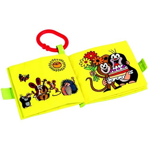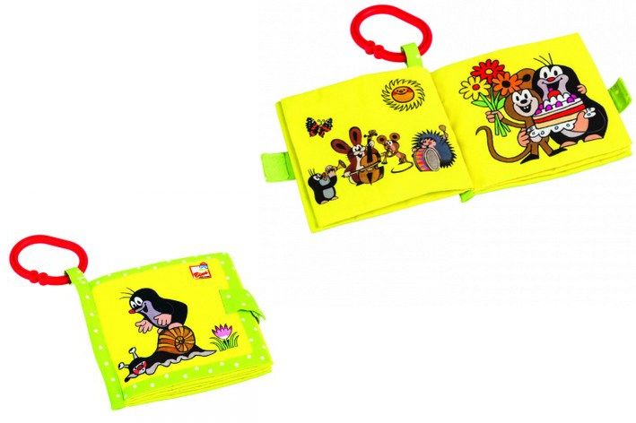 Knížka z textilu s obrázky s oblíbeným Krtkem a jeho nerozlučnými přáteli. Hračka je opatřená zapínáním na suchý zip a jednotlivé stránky zábavně šustí. Součástí je navíc i ouško, díky kterému je možné knížku připevnit ke kočárku.