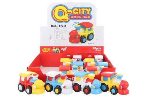 Plastová mašinka na setrvačník. Při jízdě hýbe komínkem. Rozměry mašinky cca 9 x 5,5 x 6 cm. Rozměry balení cca 29 x 6,5 x 25 cm. Věk 18m+.