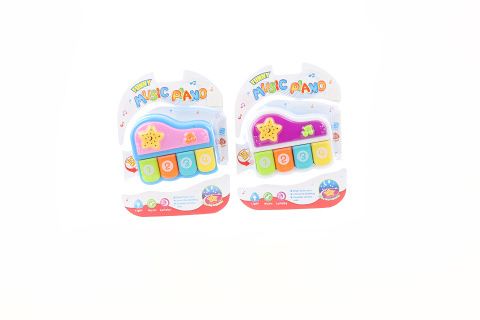 Plastové piánko. Hraje a vydává tóny a melodie ukolébavek. Napájení na 2 AAA baterie (jsou součástí balení). Rozměry piánka cca 12 x 10 x 4 cm. Rozměry balení cca 22,5 x 17 x 5 cm. Věk 18m+