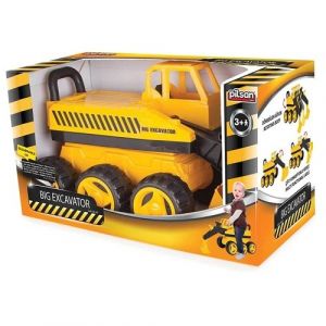 Plastový bagr s 3 osami s přední nakládací lžící ,funkční. Celková délka výrobku 77 cm.V zimě vhodné na doma,v létě na zahradu,pláž,…