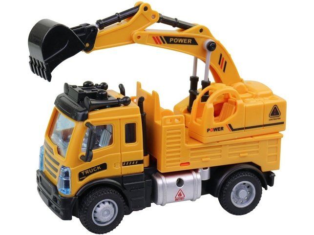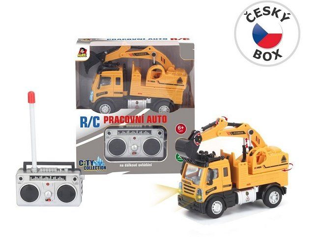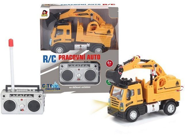 Auto bagr na dálkové ovládání z kolekce City collection. Ovladač v designu přenosného radiomagnetofonu. Auto jezdí dopředu, dozadu, vlevo a vpravo. Český box. Měřítko 1:64. Vhodné pro děti od 6 let. Světelné efekty. Napájení auto: baterie 2 x 1,5 V AA (nejsou součástí balení), ovladač: baterie 2 x 1,5 V AA (nejsou součástí balení). Auto obsahuje na spodní straně páčku jemného vyladění pohybu. Jestliž se auto při jízdě vpřed vychyluje na jednu stranu, je možné touto páčkou směr seřídit. Rozměry balení 17 x 16 x 7 cm.