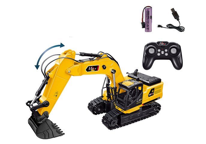 Bagr RC na dálkové ovládání. Rozměry 46x13x23 cm. Frekvence 2. 4GHz. Zvukové efekty. Bateriový pack 3. 7V do bagru součástí, 2xAA do ovladače nejsou součástí. USB kabel součástí. Ovladač - přepínač ON/OFF, pohyb dopředu a dozadu, otáčení vlevo a vpravo, tlačítko zvukové efekty, tlačítko vypnutí zvuků, tlačítko DEMO, tlačítko zvedání nabíracího ramene, tlačítko pokládání nabíracího ramene. Manuální otáčení věže.
