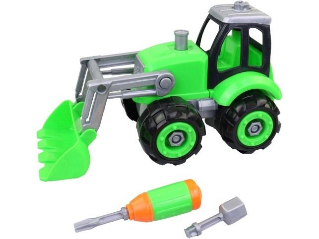 Bagr šroubovací, 24 x 11 x 13 cm. Hračka je skvělá k procvičení motoriky. Bagr může rozložit a zpět složit přiložený šroubovákem. Hračka je určena pro děti 3+. Rozměr hračky je 24 x 11 x 13 cm. Materiál hračky je plast. Balení hračky je display box. Produkt je určený pro kluky. Ke zprovoznění produktu jsou potřeba 3 AG13 baterie. Baterie jsou součástí balení.