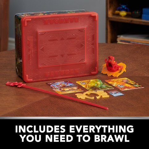Uložte si sbírku Bakuganů do Baku-tinu, abyste mohli kdykoliv bojovat ve velkém stylu. Na tomto prémiovém kufříku na Bakugany jsou úžasné kresby Bakuganů a patří k němu Mantid Bakugan se speciálním útokem. Tato sada obsahuje také sběratelské karty, například karty postavy, speciálního útoku a brány, spolu s tažným lanem XL, se kterým můžete vyrazit do bitvy se svými oblíbenými bojovníky Bakugan. Když Baku-tin otevřete, získáte dvě vrstvy úložného prostoru pro Bakugany, sběratelské karty a kruhy na speciální útoky, které jsou snadno přístupné a ideální na cesty. Odklopením a překlopením víka si vytvoříte vlastní bitevní prostor, kde můžete kdykoli bojovat. Každá akční figurka Bakugan obsahuje speciální kód, který lze použít v online hře Roblox pro nové způsoby hraní a interakce. Vylepšete si herní strategii pomocí balíčků Bojová aréna a Trénovací balíček (každý se prodává samostatně). Přidejte všechny zbrusu nové hračky Bakugan včetně bitevních a startovních balíčků (každý se prodává samostatně) mezi své oblíbené sběratelské předměty a sestavte si elitní tým. Díky Baku-tinu si domů přinesete dokonalé úložiště hraček pro svou sbírku Bakuganů.
