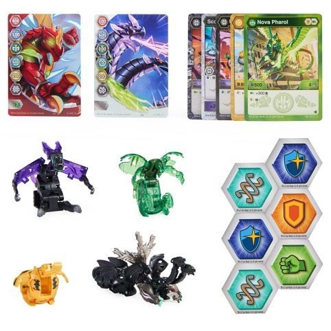 Multibalení Bakugan Sbírka Legend S5 přináší hrdiny a padouchy ze seriálu k životu. Vše, co potřebuješ pro souboj. Obsahuje 1 svítící Bakugan Nova, 1 Bakugan Ultra, 1Geogan, 1 Bakugan, 3 karty charakteru, 2 karty schopností, 2 Gate karty, 6 Baku-žetonů. Vhodné od 6 let. Na baterie: 1x LR44 (je součástí balení)
