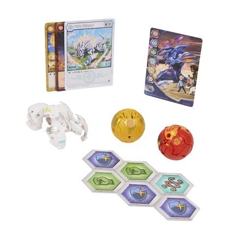 Nová startovací sada se 3 Bakugan bojovníky ze série Evolutions S4. Balení obsahuje 1 Bakugan Ultra, 2 Bakugan, 6 Baku-žetonů, 3 karty schopností, 3 karty charakteru, 1 Gate kartu, instrukce a pravidla. Vhodné od 6 let.