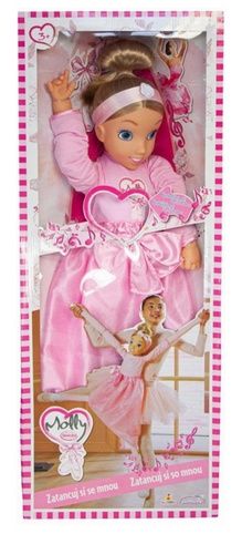 Úžasná baletka Molly zkus si s ní zatančit. Připni si pomocí gumiček Molly ke svým nohám, chytni ji za ruce a začni tančit. Když zmáčkneš Molly hrudník začne hrát, krásnou baletní muziku. Představení může začít. Výrobek vyžaduje 3× LR44 baterie (jsou součástí balení). Hračka je vhodná pro děti od 3 let.