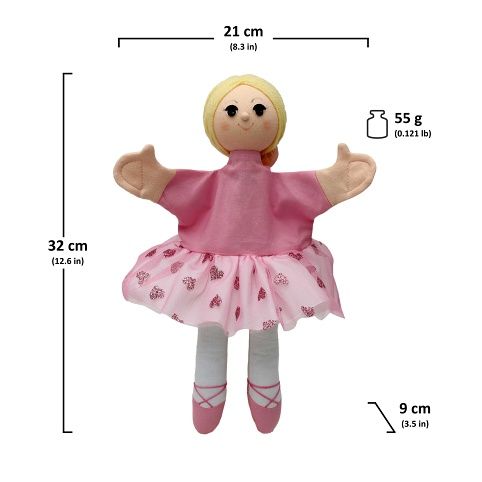 Textilní maňásek s nohama, vhodný pro děti od 3 let.