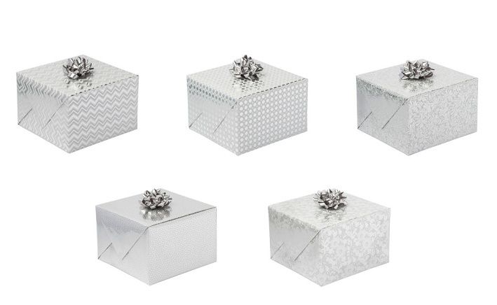 Celoroční dárkový balicí papír s metalickým potiskem.