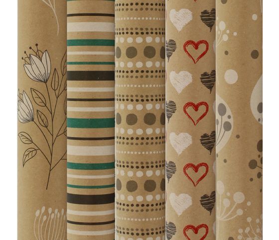 Dárkový balicí papír- přírodní barva- mix vzorů- 200 x 70cm