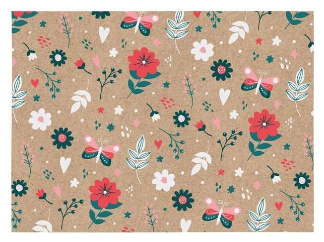 Celoroční balicí papír KRAFT v mixu přírodních motivů inspirované přírodou, jako jsou květiny, zvířátka (například berušky), listy a další přírodní prvky, které balení dodávají rustikální a zároveň stylový vzhled. Je skvělou volbou pro každou příležitost – ať už jde o narozeniny, svátky nebo jen malé pozornosti pro vaše blízké. Kraftový papír je recyklovatelný a šetrný k životnímu prostředí, což oceníte, pokud vám záleží na udržitelném životním stylu. Balení: 96 ks Gramáž: 70 g Motiv: zvířátka, listy Velikost role: 2 ks - 1000 mm x 700 mm Všech 96 ks je baleno v kartonové krabici. Uvedená cena je za 1 ks.
