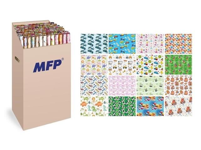 Balicí papírv roli s dětskými motivy. U dárku je velmi důležitý obsah, ale i to, aby byl krásně zabalený. Balení obsahuje 2 archy 100x70 cm. Velikost role: 200x70cm Gramáž: 80g Balení: 96 ks Vzor: různé vzory - viz obrázek Uvedená cena je za 1 ks. Všech 96 ks je baleno v kartonové krabici.