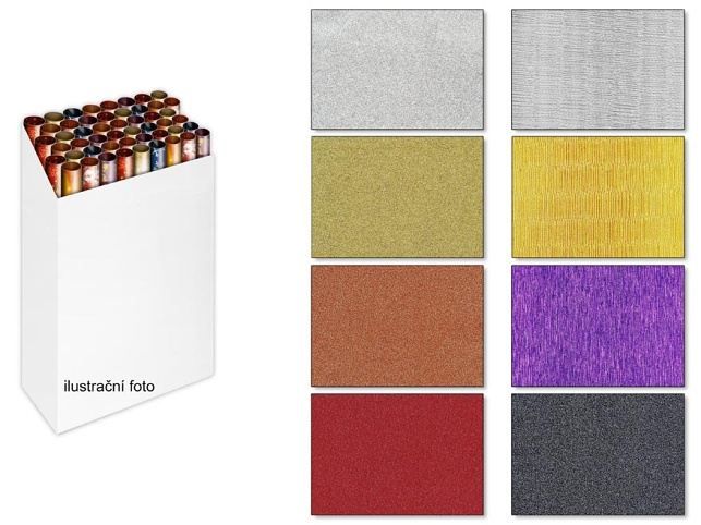 Balicí papír - 8 různých barev - U vánočního dárku je velmi důležitý obsah, ale i to, aby byl u stromečku krásně zabalený. Pořiďte si u nás dárkový balící papír s vánočním motivem. Nezapomeňte si koupit i pěknou stužku a jmenovky na dárek. Velikost role: 150x70cm Gramáž: 80g Balení: 48 ks Vzor: 8 barev Uvedená cena je za 1 ks. Všech 48 ks je baleno v kartonové krabici.