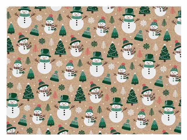 Vánoční balicí papír KRAFT s motivem sněhuláků a vánočních stromečků. Vysoce kvalitní kraftový papír, který je pevný a odolný, ideální pro balení dárků všech tvarů a velikostí. Udělejte radost svým blízkým nejen obsahem, ale i krásným vzhledem dárku. U nás najdete vše, co potřebujete pro dokonalé zabalení dárků - od balicího papíru až po stužky a jmenovky. Balení: 25 ks Gramáž: 60 g Rozměr archu: 1000 x 700 mm Motiv: sněhuláci, vánoční stromečky Všech 25 ks je baleno v sáčku. Uvedená cena je za 1 ks.