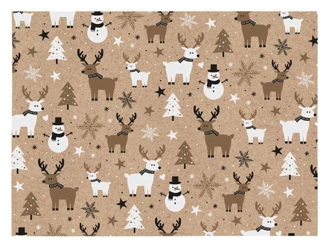 Vánoční balicí papír KRAFT s motivem vánočních stomečků, sobů a sněhových vloček. Vysoce kvalitní kraftový papír, který je pevný a odolný, ideální pro balení dárků všech tvarů a velikostí. Udělejte radost svým blízkým nejen obsahem, ale i krásným vzhledem dárku. U nás najdete vše, co potřebujete pro dokonalé zabalení dárků - od balicího papíru až po stužky a jmenovky. Balení: 25 ks Gramáž: 70 g Rozměr archu: 1000 x 700 mm Motiv: vánoční stromečky, sobi, sněhové vločky Všech 25 ks je baleno v sáčku. Uvedená cena je za 1 ks.