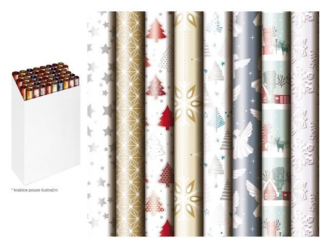 Balicí papír - vánoční role - 8 různých vzorů - U vánočního dárku je velmi důležitý obsah, ale i to, aby byl u stromečku krásně zabalený. Pořiďte si u nás dárkový balící papír s vánočním motivem. Nezapomeňte si koupit i pěknou stužku a jmenovky na dárek. Velikost role: 1000x70cm Gramáž: 80g Balení: 50ks Vzor: různé vánoční vzory - viz obrázek Uvedená cena je za 1 ks. Všech 50 ks je baleno v kartonové krabici.