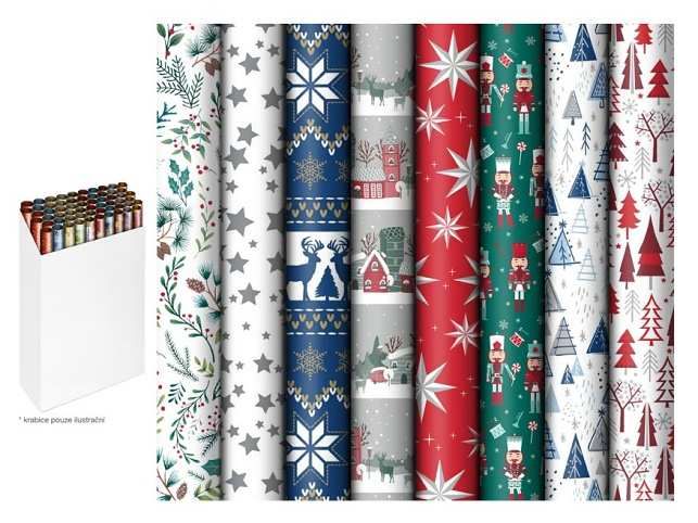 Vánoční balicí papír v roli v mixu 8 motivů. Připravte se na Vánoce a udělejte radost svým blízkým nejen obsahem, ale i krásným vzhledem Vašich dárků. Nezapomeňte, že krásně zabalený dárek přináší ještě větší radost. U nás najdete vše, co potřebujete pro dokonalé zabalení dárků - od balicího papíru až po stužky a jmenovky. Balení: 50 ks Gramáž: 55 g Motiv: mix vánočních motivů Velikost role: 10000 x 700 mm Všech 50 ks je baleno v kartonové krabici. Uvedená cena je za 1 ks.