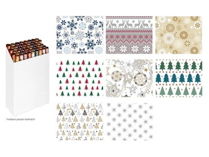 Balicí papír - vánoční role - 8 různých vzorů - U dárku je velmi důležitý obsah, ale i to, aby byl krásně zabalený. Pořiďte si u nás dárkový balící papír s vánočním motivem. Nezapomeňte si koupit i pěknou stužku a jmenovky na dárek. Velikost role: 200x70cm Gramáž: 80g Balení: 60 ks Vzor: různé vánoční vzory Uvedená cena je za 1 ks. Všech 60 ks je baleno v kartonové krabici.