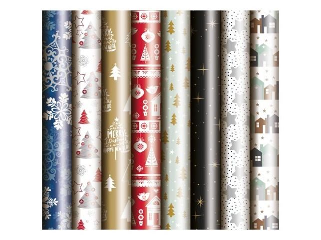 Balicí papír - vánoční role - 8 různých vzorů - U vánočního dárku je velmi důležitý obsah, ale i to, aby byl u stromečku krásně zabalený. Pořiďte si u nás dárkový balicí papír s vánočním motivem. Nezapomeňte si koupit i pěknou stužku a jmenovky na dárek. Velikost role: 500x70cm Gramáž: 55g Balení: 55 ks Vzor: různé vánoční vzory - viz obrázek Uvedená cena je za 1 ks. Všech 55 ks je baleno v kartonové krabici.