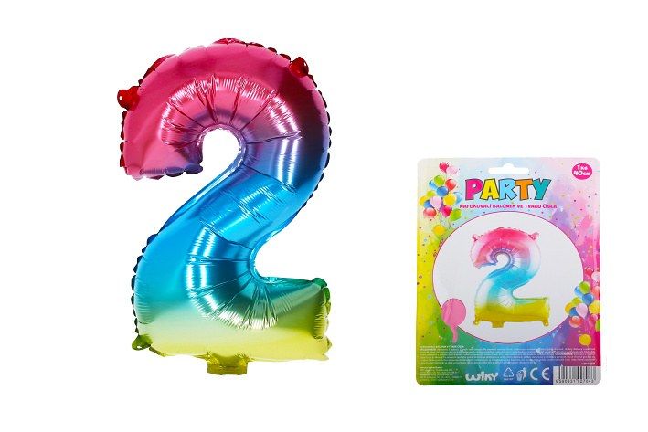 Duhový nafukovací balónek ve tvaru čísla 2 je vhodný jako doplněk na narozeninovou párty!