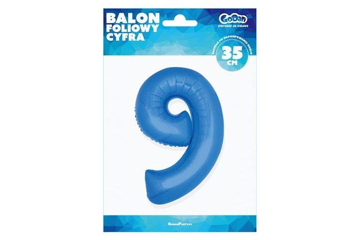 Balonek č. 9 modrý 35cm narozeniny foliový