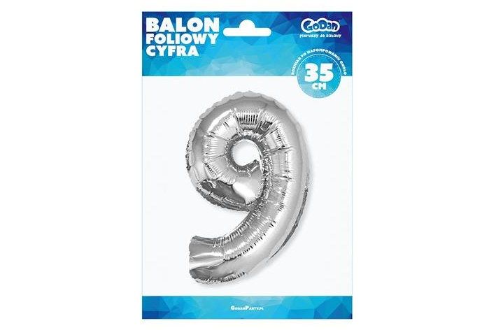 Balonek č. 9 stříbrný 35cm narozeniny foliový