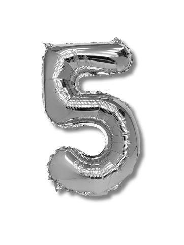Fóliový balónek ve tvaru císla 5 o velikosti 40 cm v elegantní stríbrné barve. Ideální dekorace na oslavy, narozeniny, výrocí ci jiné slavnostní príležitosti. Balónek lze snadno nafouknout pumpickou nebo brckem. Po nafouknutí není potreba otvor zavazovat. Pro vyfouknutí lze opet použít brcko. Balónek je vybaven závesnými ocky v horní i dolní cásti. Praktický a stylový doplnek pro každou oslavu.