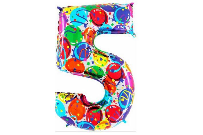 Balonek foliová číslice č.5 PÁRTY 102cm