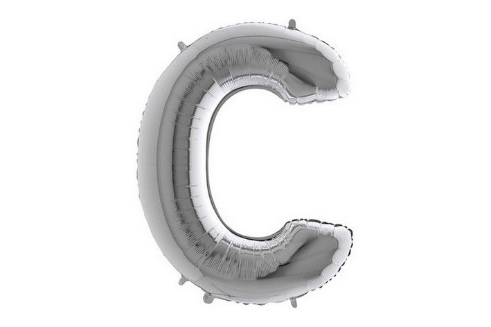 Stříbrné písmeno ve tvaru C, výška 102cm. Jsou vhodné pro nafukování heliem i vzduchem.