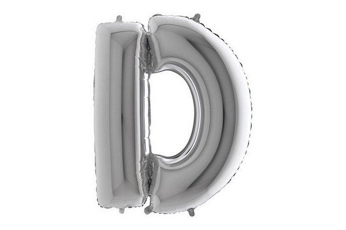 Stříbrné písmeno ve tvaru D, výška 102cm. Jsou vhodné pro nafukování heliem i vzduchem.