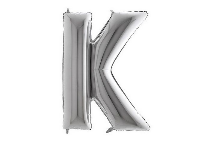 Stříbrné písmeno ve tvaru K, výška 102cm. Jsou vhodné pro nafukování heliem i vzduchem.