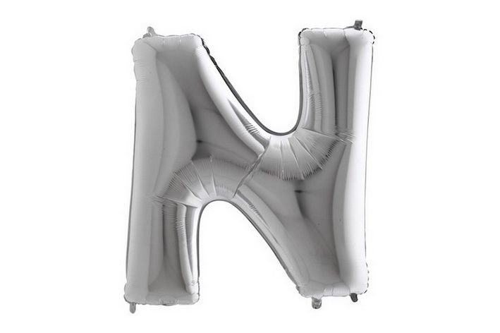 Stříbrné písmeno ve tvaru N, výška 102cm. Jsou vhodné pro nafukování heliem i vzduchem.