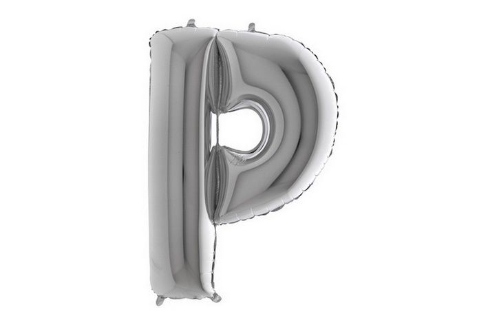 Stříbrné písmeno ve tvaru P, výška 102cm. Jsou vhodné pro nafukování heliem i vzduchem.