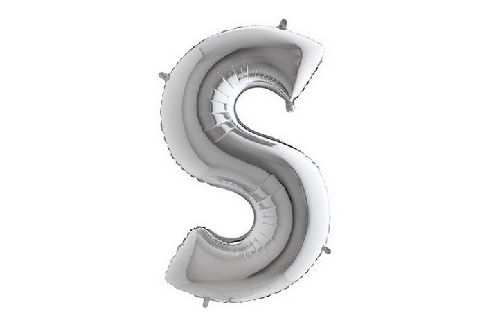 Stříbrné písmeno ve tvaru S, výška 102cm. Jsou vhodné pro nafukování heliem i vzduchem.