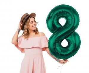 Balónek fóliový BEAUTY&CHARM 85 cm lahvově zelený "8"