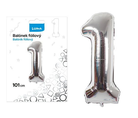 Balónek fóliový č. 1 STŘÍBRNÝ 101cm LUMA