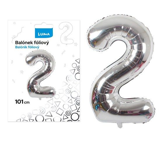 Balónek fóliový č. 2 STŘÍBRNÝ 101cm LUMA