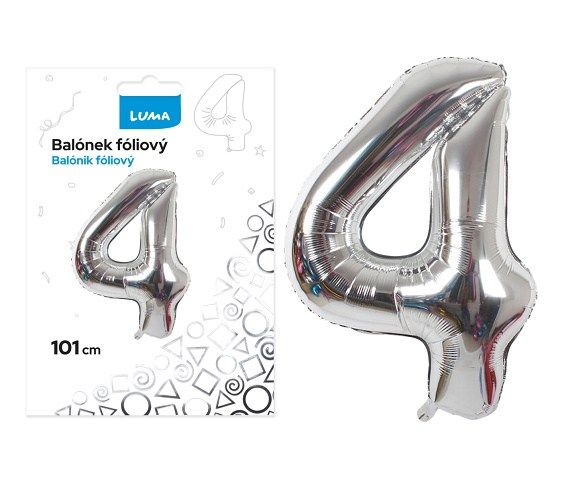 Balónek fóliový č. 4 STŘÍBRNÝ 101cm LUMA