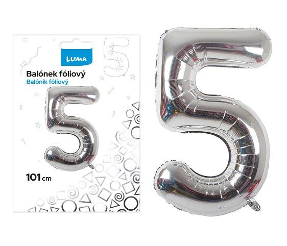 Balónek fóliový č. 5 STŘÍBRNÝ 101cm LUMA