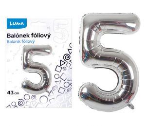 Balónek foliový č. 5 STŘÍBRNÝ 43cm