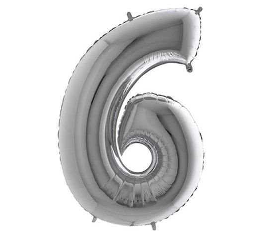 Balónek foliový č. 6 STŘÍBRNÝ 101cm