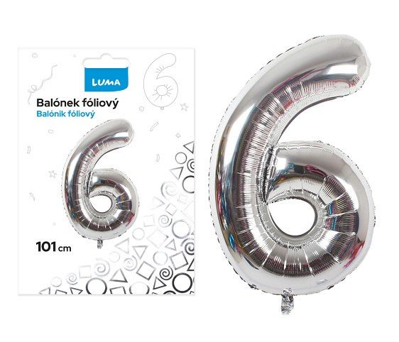 Balónek fóliový č. 6 STŘÍBRNÝ 101cm LUMA